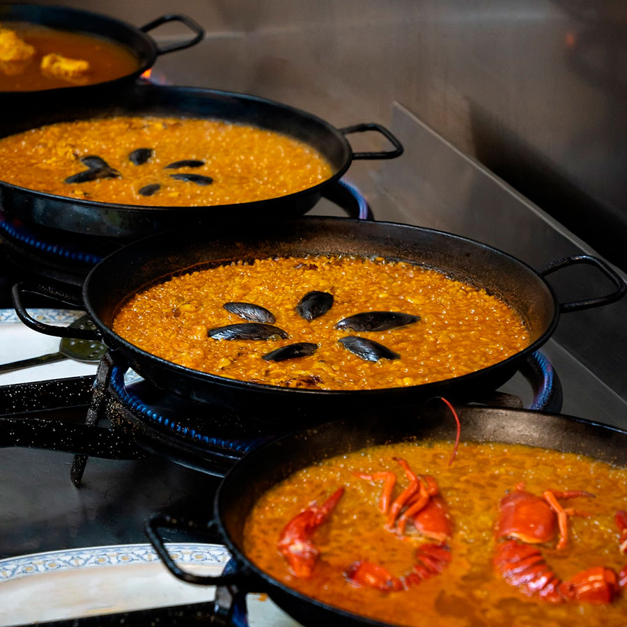 Una carta en la que destacan productos autóctonos, de tierra y mar valencianos, arroces y paellas de todos los tipos, tanto secos como melosos.